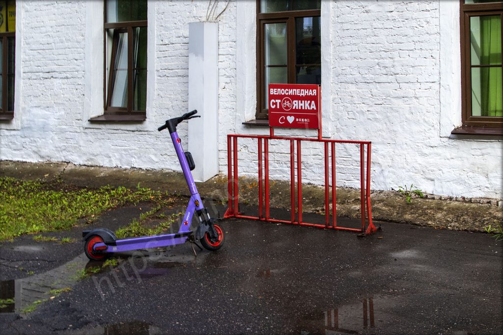 Вот отойдёшь совсем чуть-чуть от Кремля (кстати, если взять чуть левее, то будет виден дом, в котором я остановился. До него всего-то минут пять ходьбы) и всё вокруг меняется. Уже не настолько идеально вылизано или приведено в порядок. Нет, упадка здесь нет, но сам факт — здесь уже всё иначе. На пути попадаются кикшеринговые самокаты, которые просто стоят в разных местах.