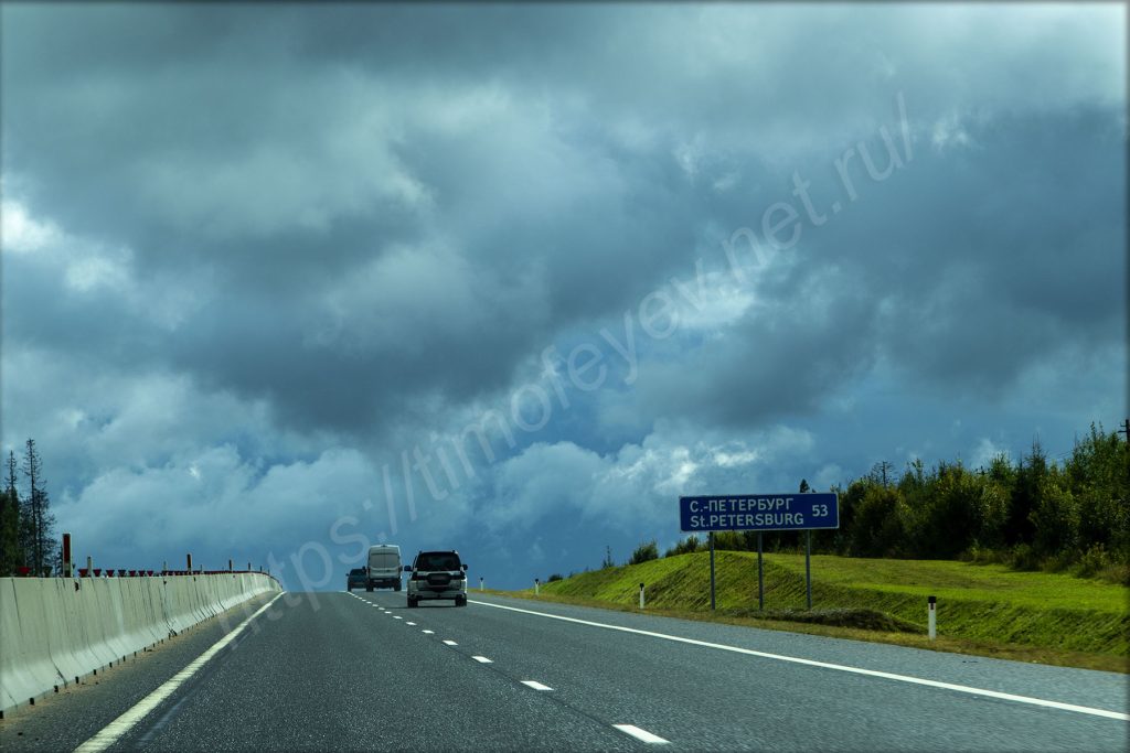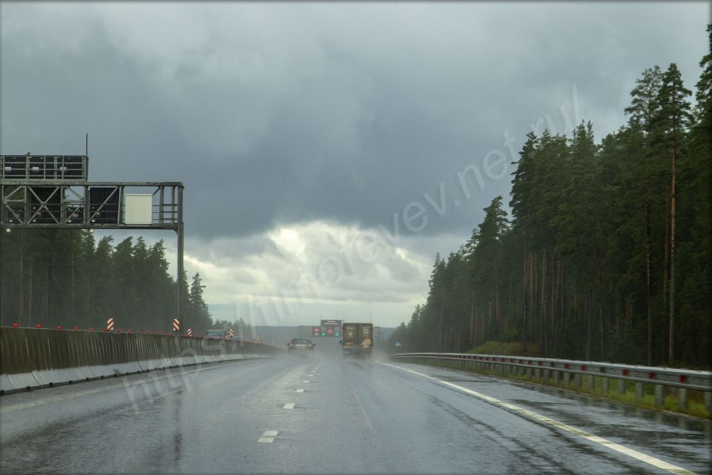 Дождь, конечно, меня нагнал. Когда сидел и обедал, то машину на ветру колыхало набегающими потоками ветра. Было очень неприятно, но мне пора дальше в путь до КАД и дальше практически до дома, чтобы съехать на Приморское шоссе.