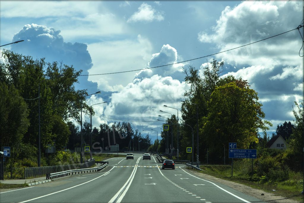 Выезжаю в сторону Александровской и Горской, где по внутренней дороге доеду до КАД, чтобы не разворачиваться на Приморском шоссе. Сейчас я доверился навигатору, который будет меня вести до Приозёрска и пляжа на Ладожском озере. Дороги здесь узкие и не везде в хорошем состоянии, так что глаз да глаз. В том году, насколько помню, из-за ремонтов мы объезжали всё по Левашовскому шоссе и выезжали за ЗСД.