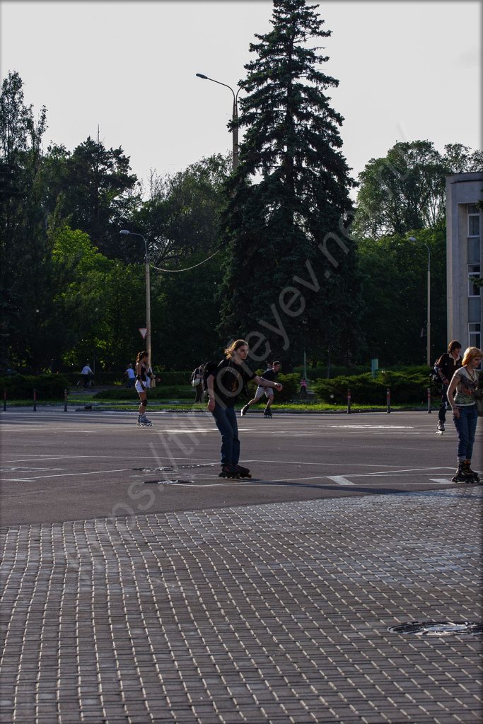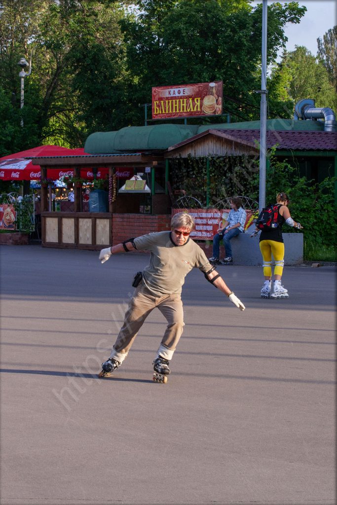 Слезли с аттракциона и направились дальше вглубь парковой зоны. Мимо нас носятся стайками роллеры и велосипедисты. Немного жалею о том, что с собой нет велосипеда, так как здесь было бы интересно покататься, но брать его в прокате, которые практически на каждом углу, не решились. Раз движущихся целей много, то имеет смысл потренироваться на них. Ещё достаточно светло.