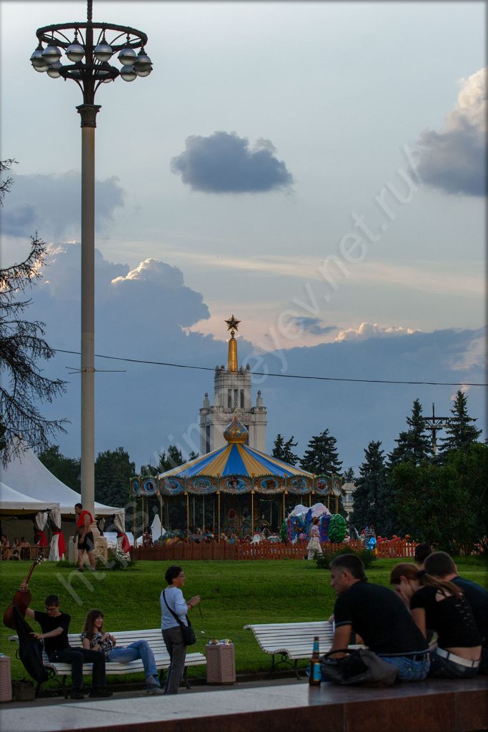 Вроде бы вечер буднего дня, но несмотря это: что на парковке машин, что людей на территории ВДНХ много. Прошли на территорию через вход у Макдональдса и направились в сторону аттракционов. Переглянувшись, направились на «Чёртово колесо». Через мгновение оно нас плавно уносило вверх от мельтешащих внизу людей, открывая перед нами новые горизонты и виды с высоты. Вот уже видны памятники взлетающей ракете «Восток-1» возле музея космонавтики, а сзади нас – «Рабочему и Колхознице», а также затруднённое движение на Ярославском шоссе. Мы всё дальше и дальше от земли, пока не достигнем апогея – самой верхней точки. После её прохождения начнём спускаться. Интересно зависнуть тут, но, увы, не в этот раз.