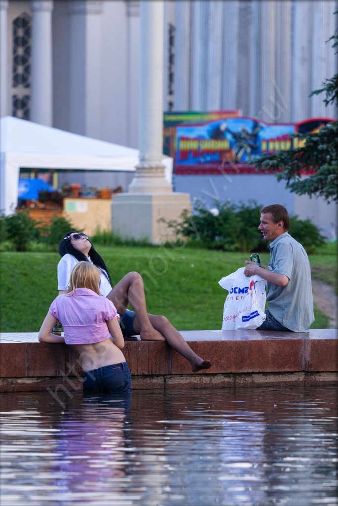 Походив по территории ВДНХ и дойдя до павильона «Электрификация», самолёта Як-42 и ракеты-носителя «Восток», решили развернуться и вернуться к фонтану «Дружбы народов», возле которого и сядем, чтобы насладиться этим тёплым и погожим вечером, общаясь о чём-то своём сокровенном. Разогретая молодёжь фотографировалась возле, а самые смелые и активные – купались в фонтане. Милиция на это никак не реагировала. Видимо, никто не хотел портить друг другу этот прекрасный вечер.