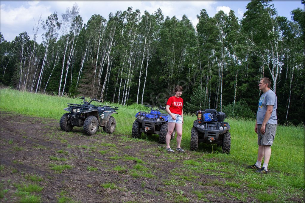 На привале, являющейся разворотной точкой маршрута, устроили небольшую фотосессию и пообщались с владельцем про характеристики этих скакунов. Это обычные китайские «Стелсы» с четырёхсот кубовыми моторами. Вроде они даже неплохо едут, что по равнине, что по просёлку, что по грязи. Особенно, если у них включить полный привод. Лично нам с подругой ездить на них понравилось.
