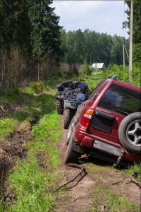 Короткий инструктаж о том, что и как делать, кого бояться, а кого нет – и вот мы уже едем за нашим проводником в сторону просёлочных дорог и небольшой грязи. Эти «квадрики» лёгкие. Это их минус и также жирный плюс в том, что засадить их нереально и всегда можно выдернуть задним ходом или при помощи рук. Однако никакой жести на нашем маршруте не встретилось, кроме пары мест, где неплохо помесили грязь, перепачкавшись с ног до головы. Кто же знал, что надо было с собой взять запасной комплект одежды?